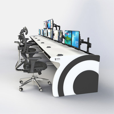 監控室電腦控制臺定制設計應用于密集型工作環境,獨特模塊式背靠背拼接設計為用戶提供舒適的工作環境,不占用更多的空間,人體工程學設計創造了一個更高效的操作平臺...